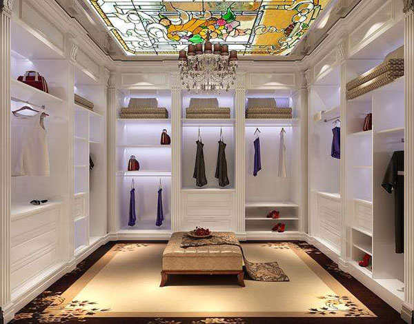 3、如果是獨立的衣帽間,設(shè)計時要合理安排燈光、色調(diào)等元素,使之即融入室內(nèi)整體風(fēng)格,又保持獨特的情調(diào)。