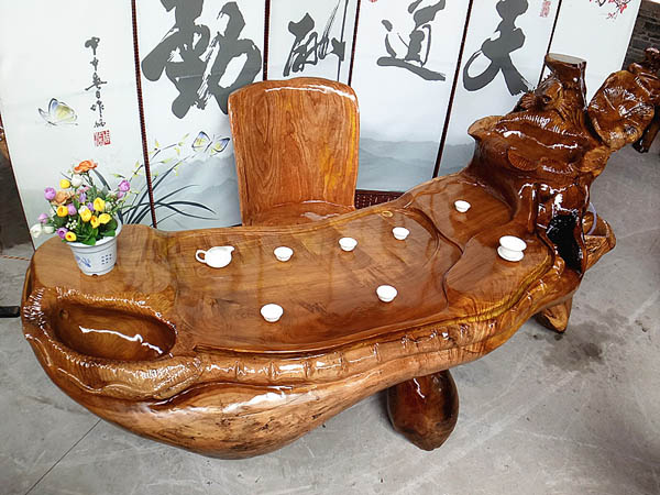 在制作根藝茶臺之前,首先必須去土,一是對根有個全面的了解,二是不去土就無法動刀動鋸。土或石頭都非常傷刀和鋸。特別是電鋸,遇到土或石頭就非了!