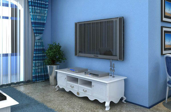 整個(gè)電視墻用淺藍(lán)色裝飾,非常明朗清新。